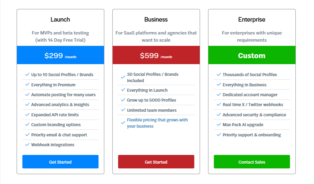 It depends on your setup. Ayrshare’s white-label access starts at $299/month. That may be justified if you’re building a custom SaaS product.