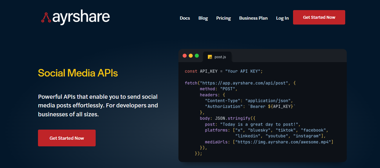 If you’re building a product that needs social media features embedded into your own application, an API-first solution like Ayrshare can be a great fit.