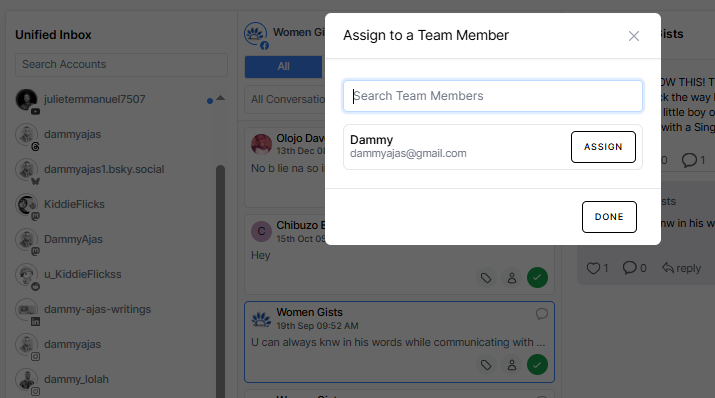 Assign Conversations to Team Members