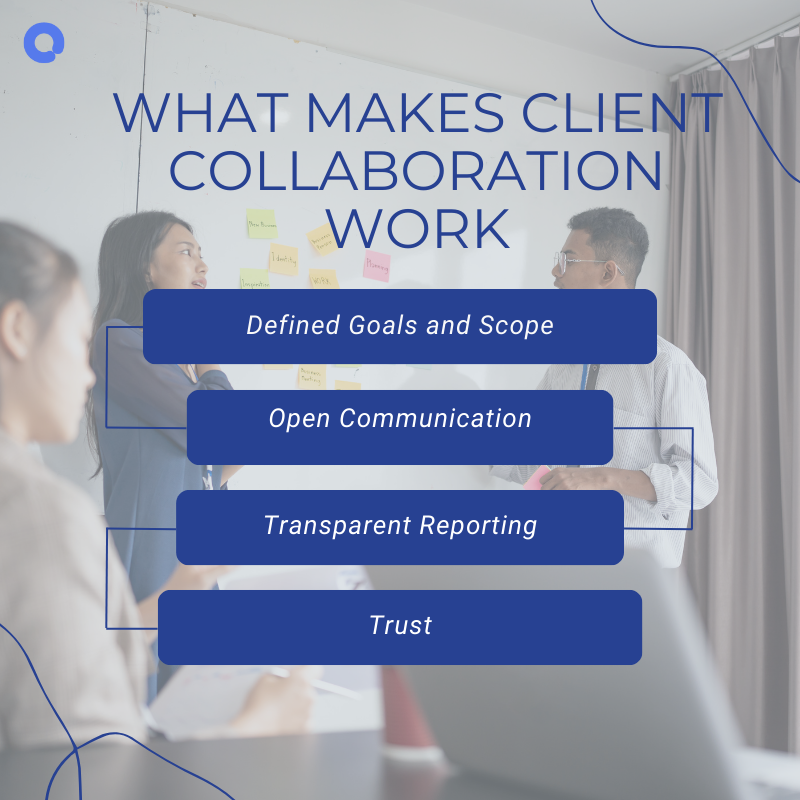 At its simplest, client collaboration is about two sides working together toward the same goal. On one side, you have the client who needs expertise. On the other, the agency that brings skills, tools, and experience to make those goals happen.