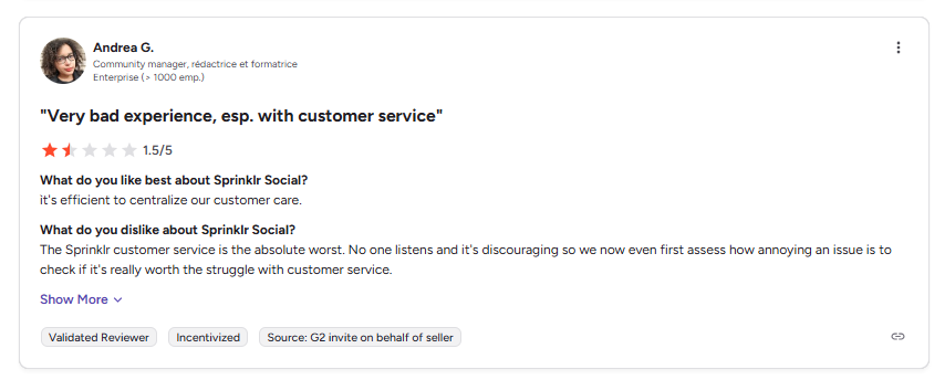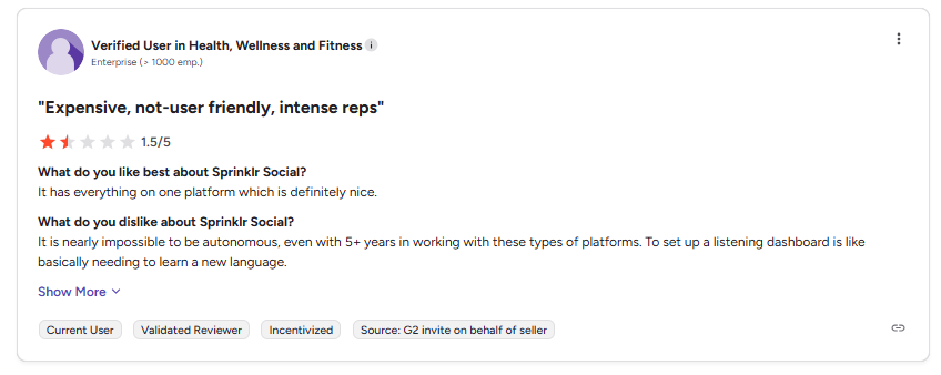 Another recurring pain point is customer support. Too many users mention long waits, vague answers, and minimal guidance, especially if you’re not one of Sprinklr’s largest enterprise clients.